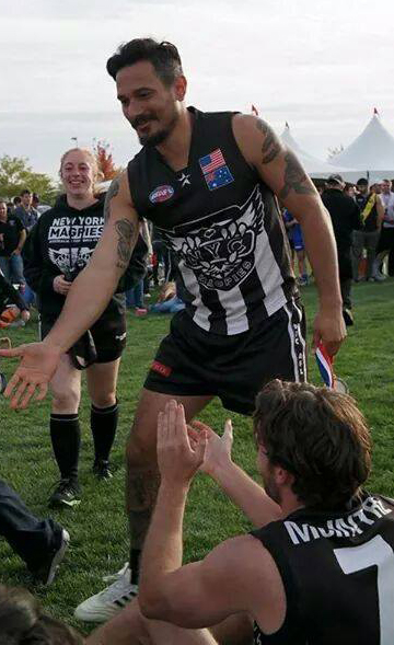 How did you get involved in footy?: Well, when your girlfriend is the founder of the NY Magpies women’s team and she constantly questions your manhood until you strap on the boots, you have to just man up and do it. So I did. There has only been minimal emotional scarring.