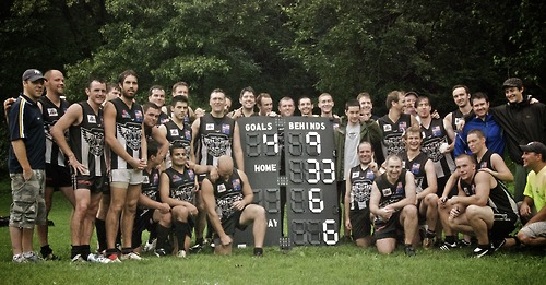 The Magpies sewed up the 2009 EAFL Premiership this Saturday by taking down Boston at home at Tibbetts Brook Park. In extremely muddy conditions reminiscent of June’s slosh-fest against Baltimore-Washington, the home team kept the visitors goalless, taking control of the game in the second half after a rousing speech from coach Rob Oliver. This is the Pies’ first top-of-the-ladder finish in the EAFL since 2005, ousting reigning champions for the past 2 years, the Baltimore-Washington Eagles.