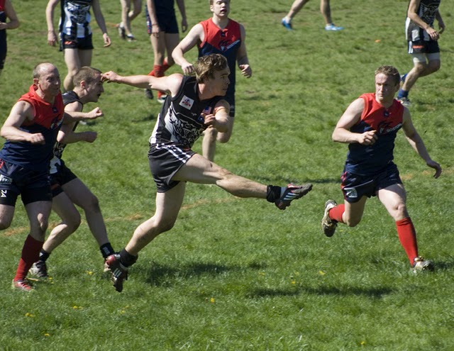 The Coaching staff made a few positional changes to start the second quarter, most significantly inserting Mike ‘Wolfman’ Speilman into the midfield to add some physical presence. The Magpies continued to retain the majority of possession but could not capitalize on the scoreboard due to some inaccurate kicking and strong pressure from the Demons backline and midfielders. Once again the Magpies established a wall across the middle of the ground and players such as Lehane, Davis and Spiteri continued to inject the ball into the Magpies forward line resulting in back to back goals to Thompson and Guarino. At half time the Magpies lead by 5 goals with Boston’s forwards continuing to be well held by the New York defence.