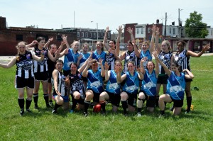 In the first match on US soil for the East Coast Women’s League, the Baltimore Washington Eagles hosted the New York Lady Magpies to a 9 a side game in nearly perfect footy weather at Frank C. Bocek Park. With the teams’ successful recruiting efforts in 2012, both Baltimore-Washington and New York had players experiencing their first ever full-tackle game.