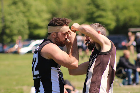 Playing with a healthy lead from the first half, Coach Shane ‘Pud’ Lowry decided to swing the changes in the lineup freeing up Luke Schoen up forward proved a masterstroke as he was able to snag a couple of goals. Strong defensive play from the club’s favorite German, Michael “Mickey” Hiebl and stalwart Adam “Ringo” Marr was not enough to prevent the Eagles from finally putting a score on the board as the home team scrounged together a couple of behinds to ensure no lap was required after the game. The third quarter was without a doubt home to the most controversial play of the game involving local heartthrob Conman.