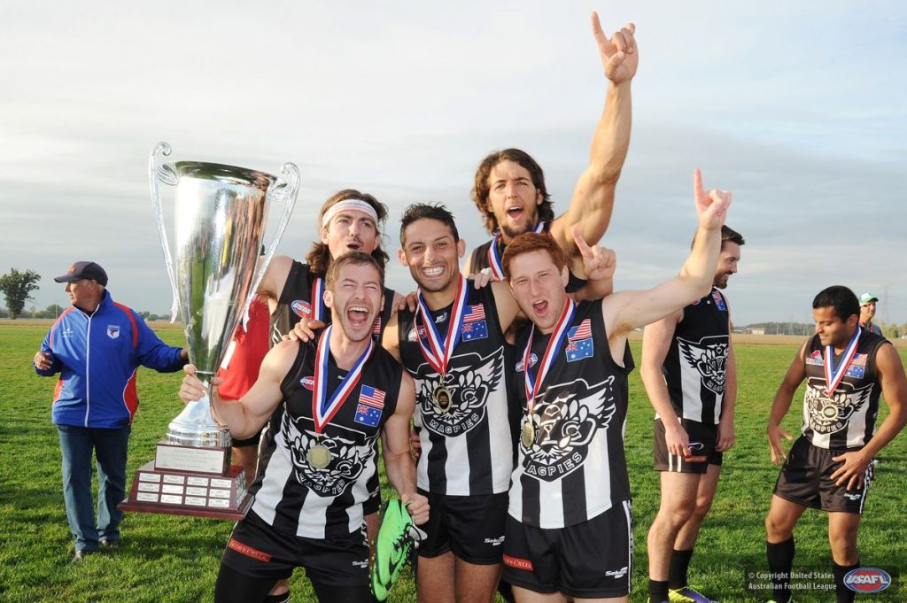 Alex made his grand entrance to our club in 2014, on a small field in Long Island City. He was hard to miss, as many of you know, given his stature. Almost immediately, he started tapping into the rich experience that our Australian players had to offer. During that season, Alex would soak up all the advice, and work tirelessly on his skill and craft as a dominating ruckman. As Glenn Ormsby, Senior Coach 2010 – 2014 recalled, “Alex was as imposing a figure on the field as we’ve seen. His attack on the ball, his fearlessness, and his work ethic were second to none and he was a major factor in the club’s 2014 National Championship.” And while the year culminated with Flag for the Magpies (greatly aided by his dominating presence on the field), it was Alex’ larger than life personality that has etched its way into club lore. Ormsby continued, “…[it was] off the field that Alex was perhaps even more impressive. He was a man of outstanding character, a natural leader and his witty sense of humor could break the ice in any situation. I am a better person for knowing Alex and will always treasure my time with him”.