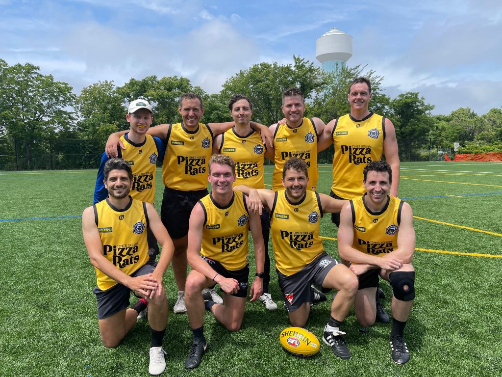 The Pizza Rats started the new #Raturday gameday on the right foot, winning 9-8 against previously undefeated Boho. The Rats had a strong midfield presence of ruckman Michael “Keem the Dream” tapping down to Matt Herbalicousness, who continued to show the elite skills that had him picked in the first round. Tommy “Rocky” Lana provided a useful outlet out of the ruck for some quick ball movement. The three midfield Rats fought for every loose ball, giving the Rats a strong counter to a skilled Boho midfield.